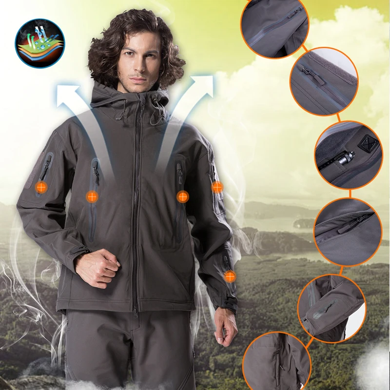 FREE SOLDIER outdoor camping instant waterproof windbreaker softshell jacket men's coat thermal outwear clothing large US size