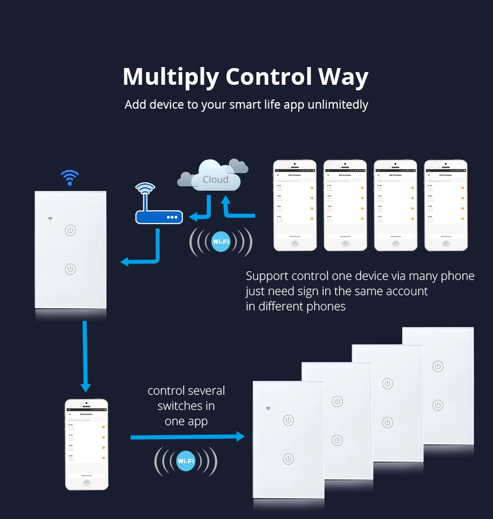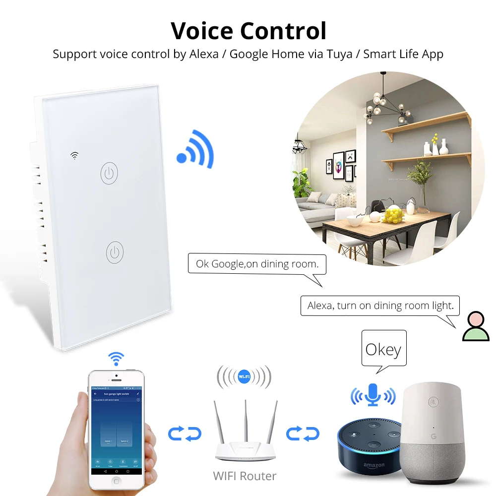 Этот тип wifi настенный выключатель может работать с Amazon Echo Alexa напрямую.