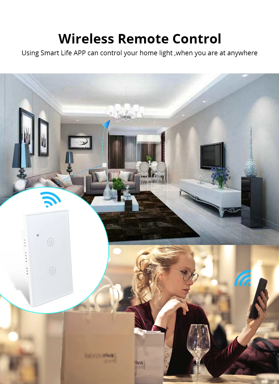 Настенный выключатель US AU, выключатель с дистанционным управлением через приложение для умного дома, 1 Gang, 2 Gang, 3 Gang, Wi-Fi, работает с Alexa