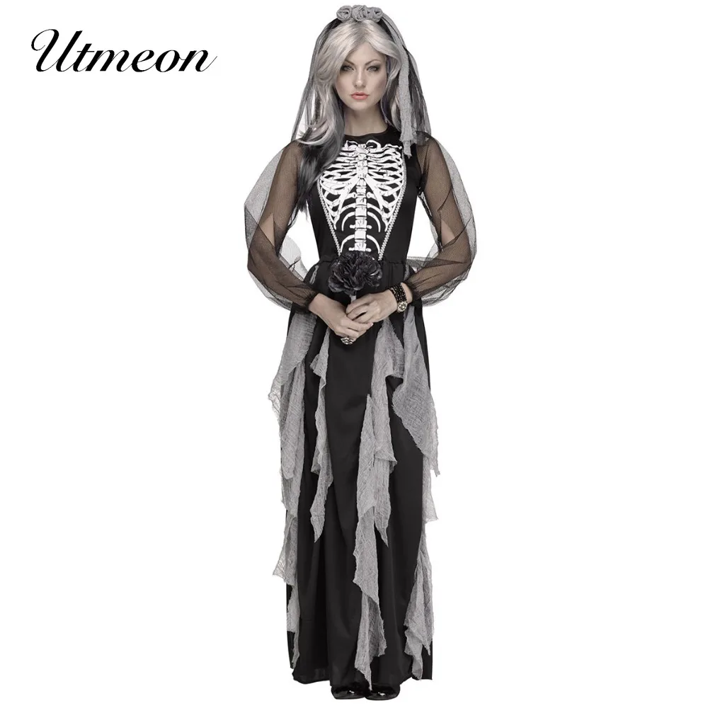Женский костюм вампира на Хэллоуин UTMEON, черный костюм зомби-призрака, нарядное платье для костюмированной вечеринки