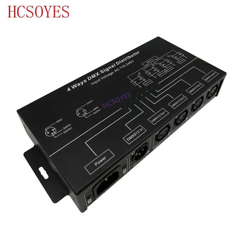 DMX124 AC100V-240V входной усилитель DMX512 разветвитель повторитель сигнала DMX 4CH 4 выходных порта распределитель сигналов DMX