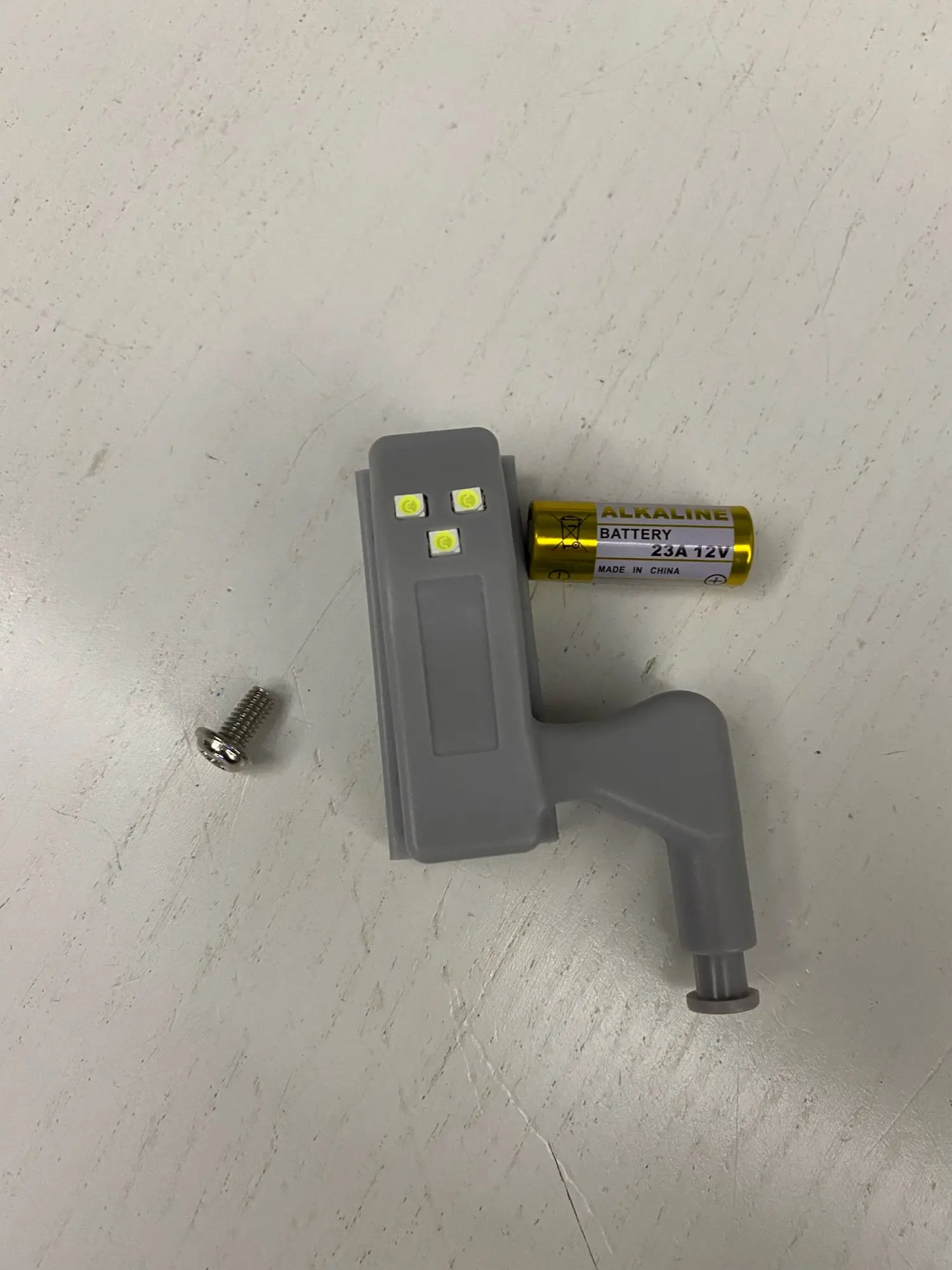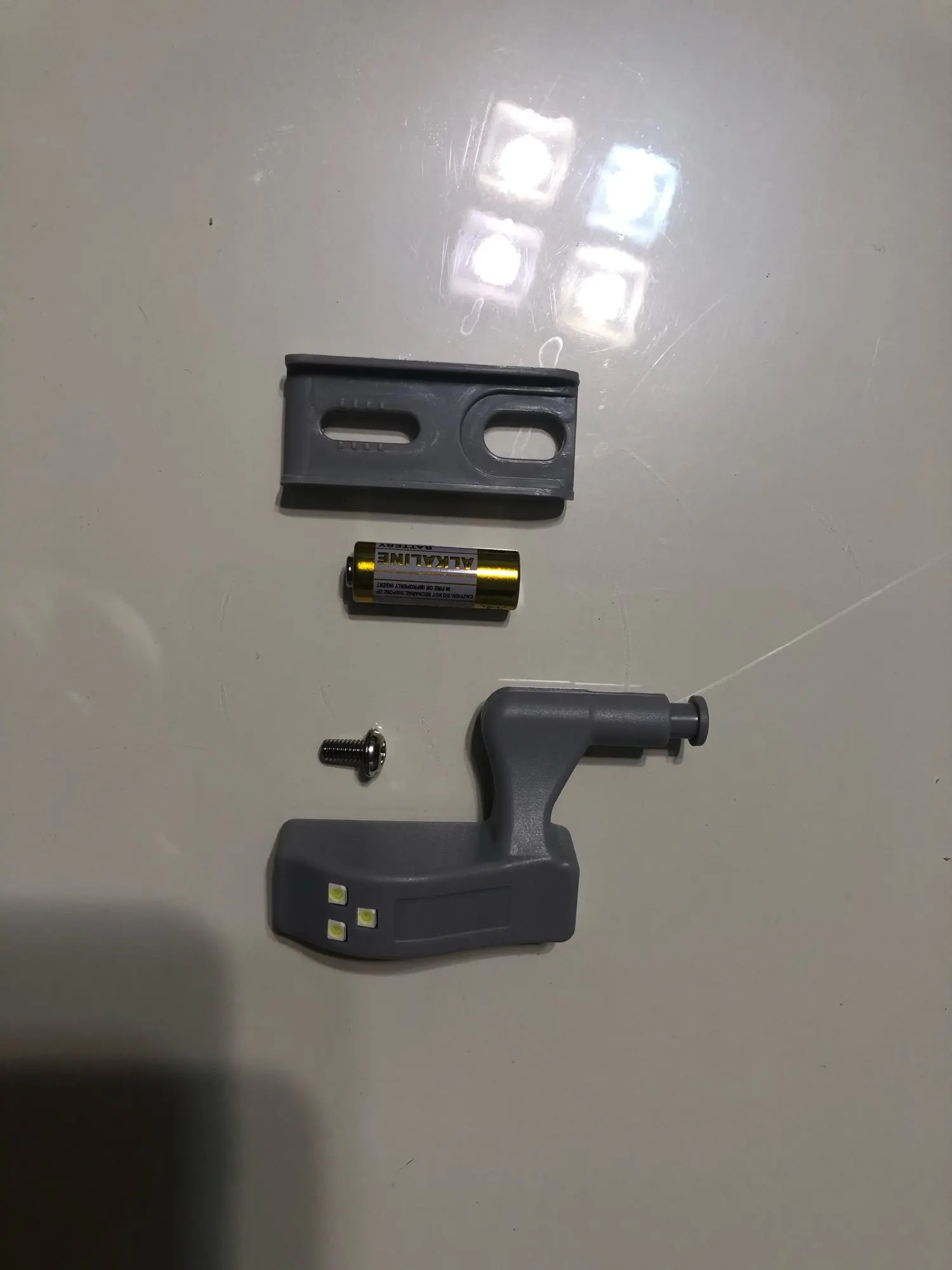 Конструкция простейшая, батарея типа 23A 12V в комплекте (а это минимум половина цены). На петли Blum подходит прекрасно, на дешевые китайские не на все, парочку вообще просто прикрутил на стенку шкафа. Понатыкал везде и дома, и на даче - прикольно!
