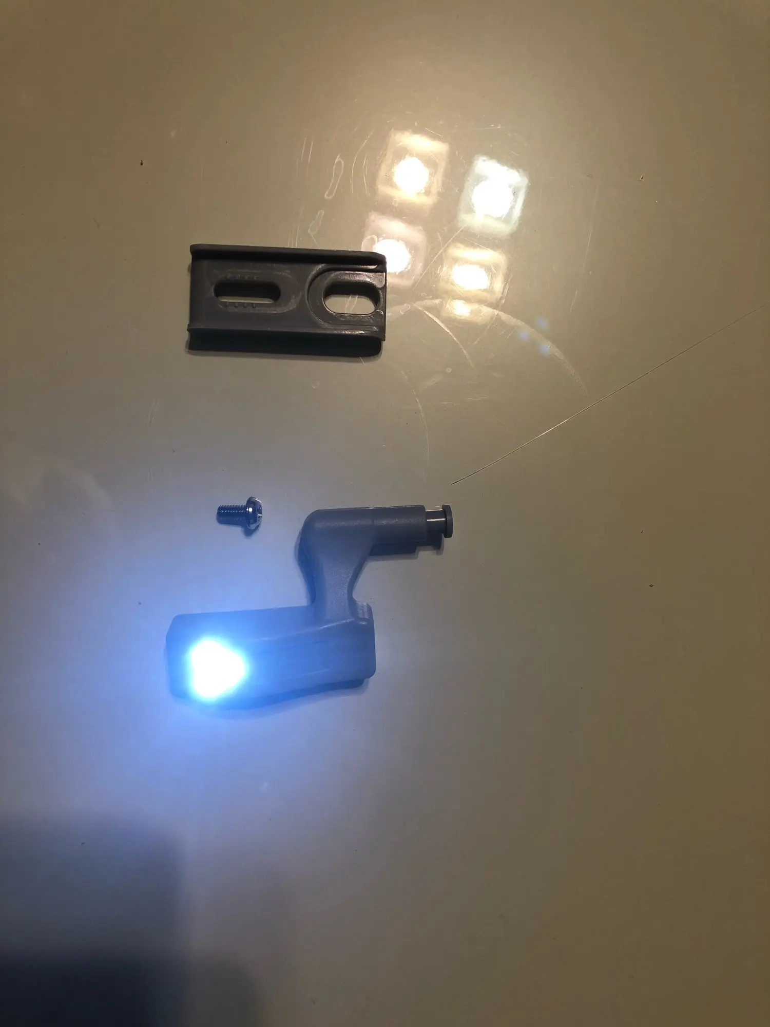 Все дошло быстро .) очень крутая и удобная подсветка устанавливал как на петли так и просто к стенке. На фото все указано .
