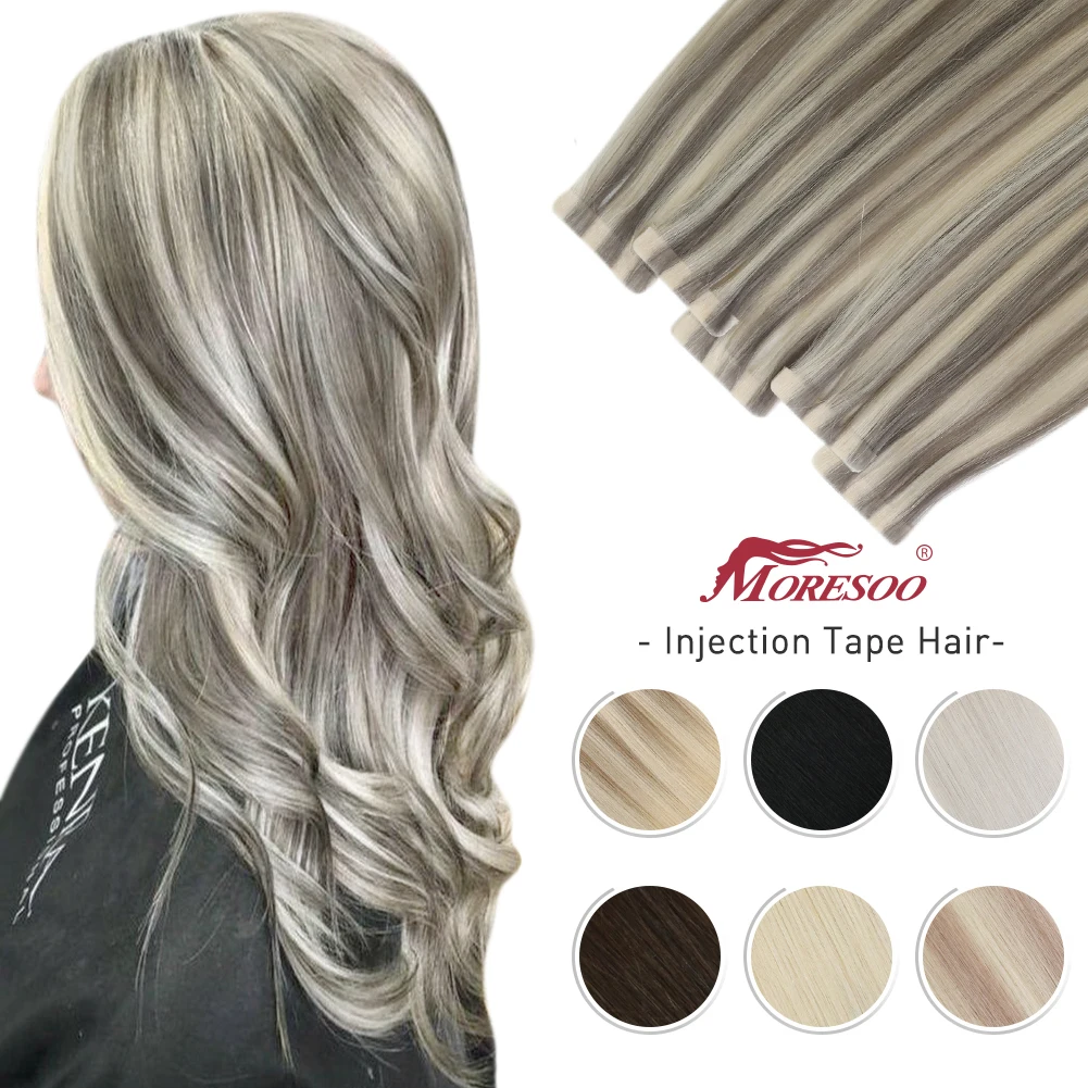 невмдимки для волос Лента для наращивания человеческих волос Moresoo, натуральные волосы двойного натяжения, натуральные прямые Бесшовные впрыскиваемые волосы из искусственной кожи
