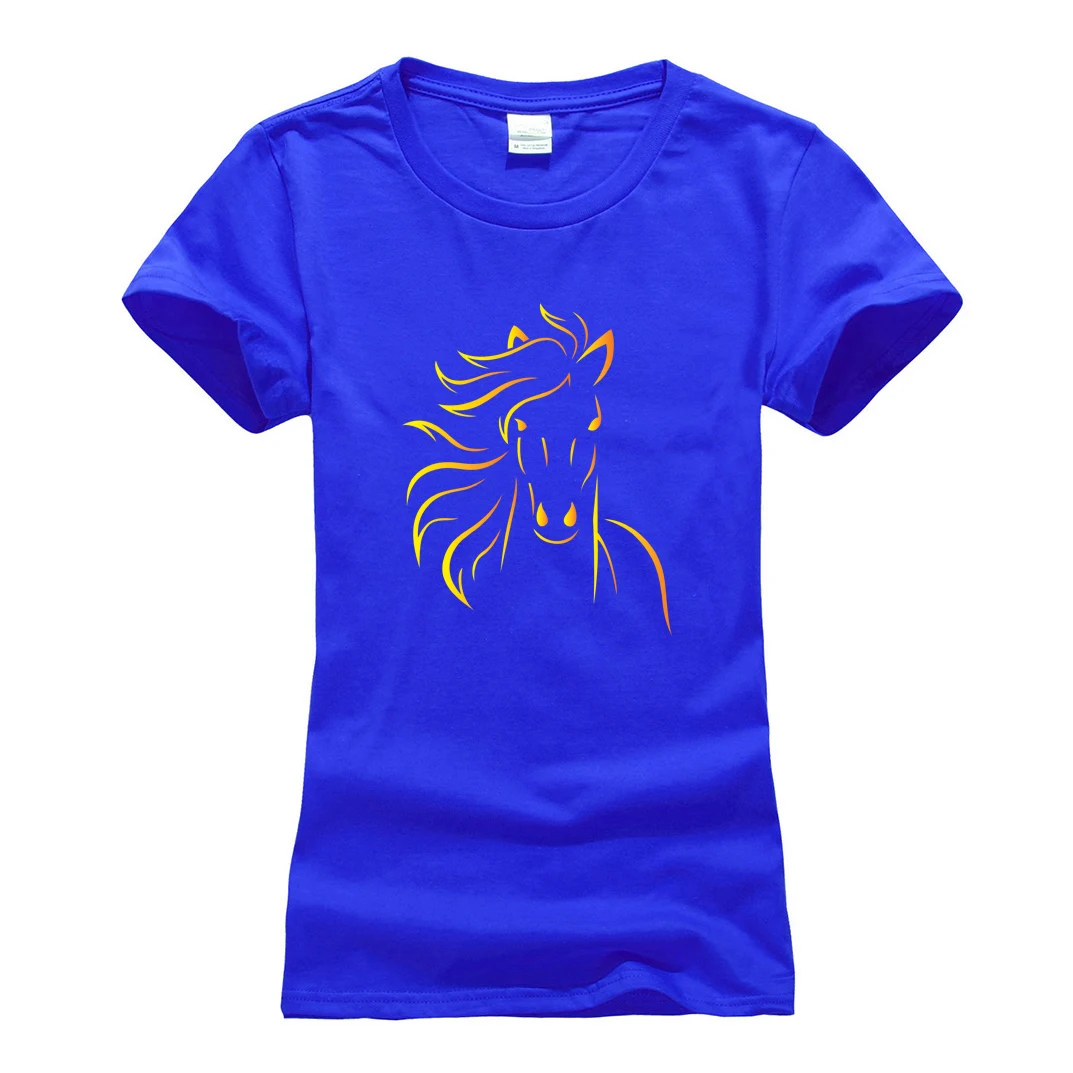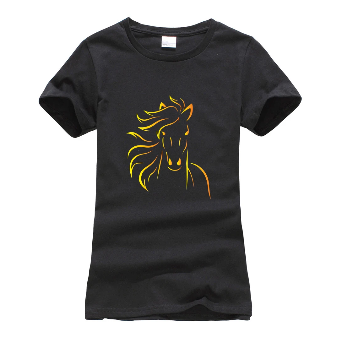 Женские летние хлопковые фитнес-футболки женские 2021 новые модные симпатичная лошадь с принтом брендовая одежда с короткими рукавами и круглым вырезом, одежда для маленьких девочек Футболка Топ