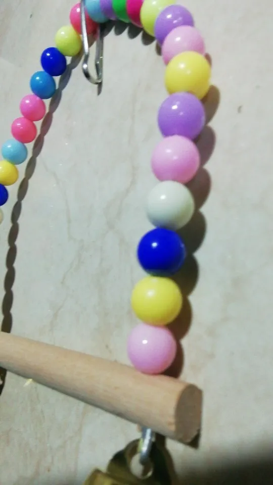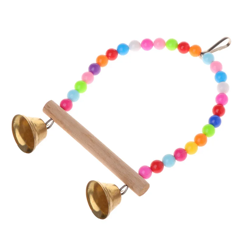 Игрушка-качели из натурального дерева, Подвесные качели-попугаи жердочка для птиц, клетка с цветными бусинами, колокольчики, игрушки, товары для птиц, C42