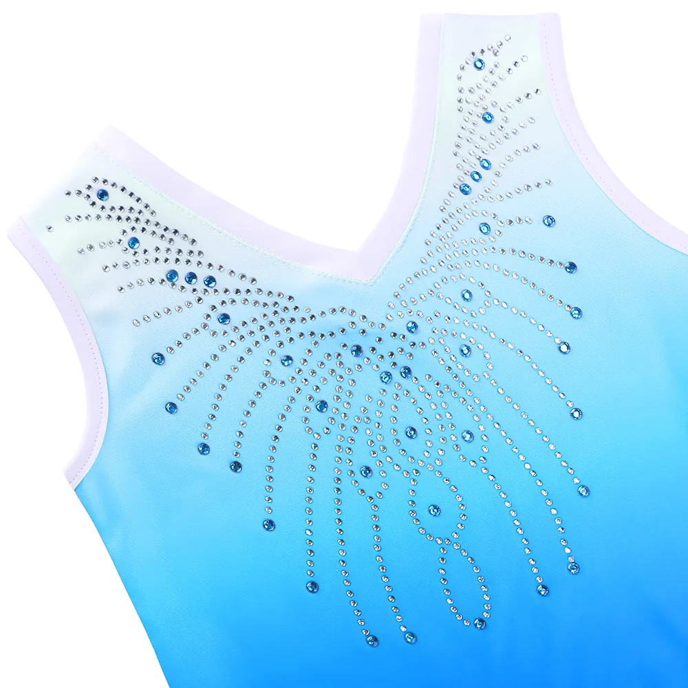 BAOHULU От 3 до 14 лет девочек без рукавов Блестящий Бриллиант гимнастический купальник Цельный синий черный белый детский балет танцевальная одежда