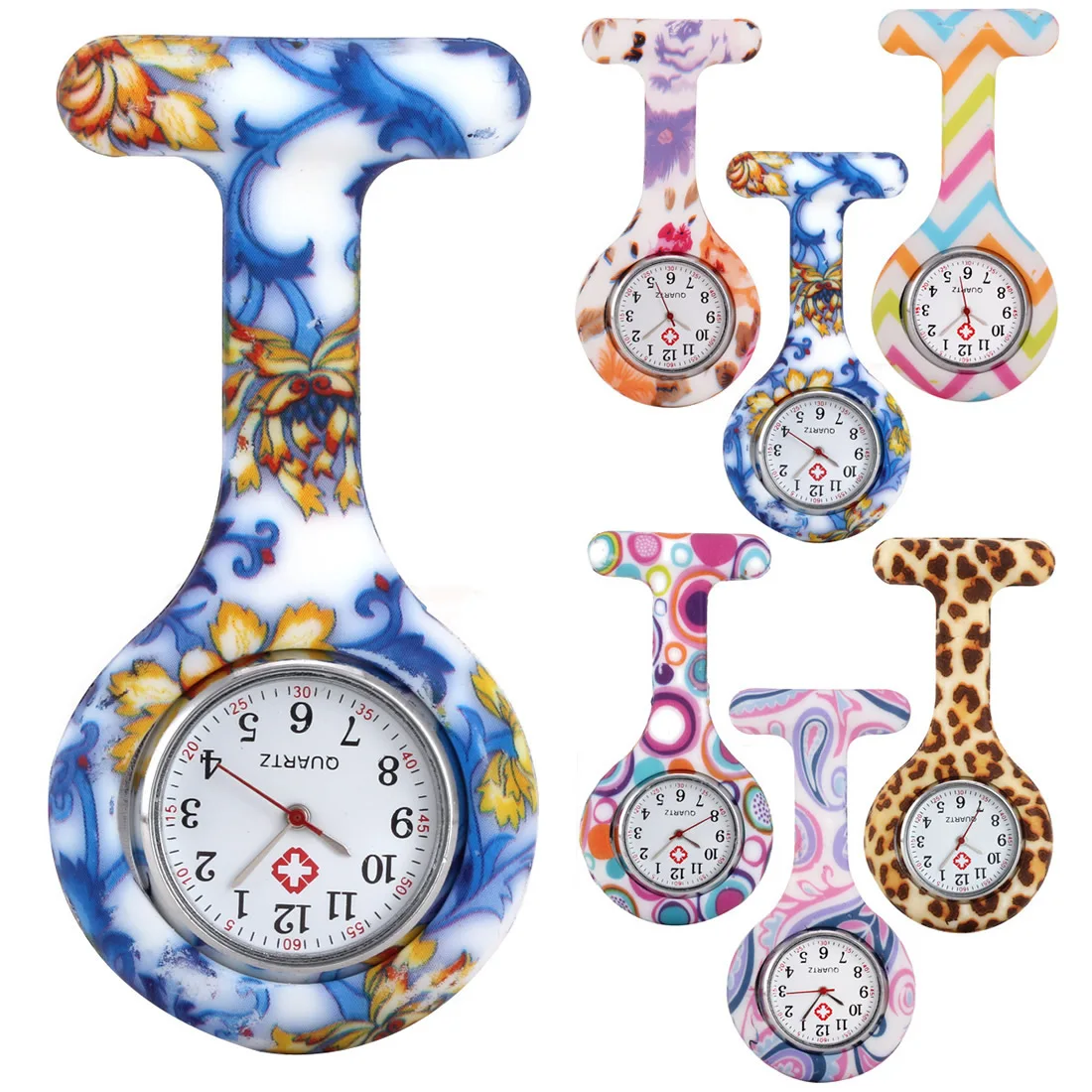 Часы медсестры модные красочные силиконовые медицинские портативные брошки Fob карманные кварцевые часы висячая подвеска с зажимом Подарочная 6 видов стилей, 42x80x13 мм, продается PC