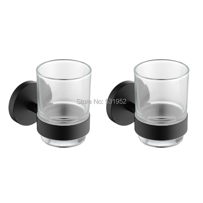 Стакан и подстаканник для зубных щеток, черный, матовый, нержавеющая сталь
