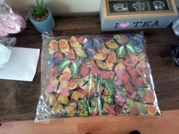 Бабочки меньше, чем кажется на фото. Ждала посылку больше двух месяцев. Заказала 11 ноября, получила в 20х числах января. Из 5 бабочек одна не работает. Сколько продержатся остальные пока не знаю.