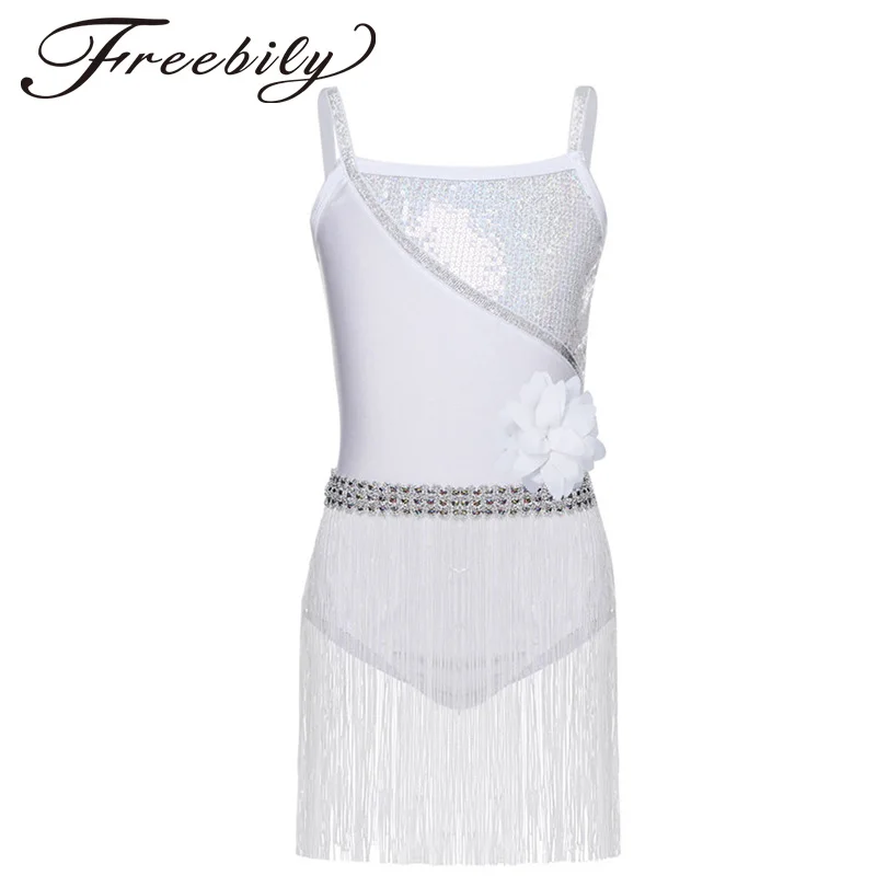 2018 детское блестящее латинское трико для девочек, красивое танцевальное платье, расшитое блестками, для латинских танцев, румбы, сальсы, танго, танцевальное трико, платье с кисточками