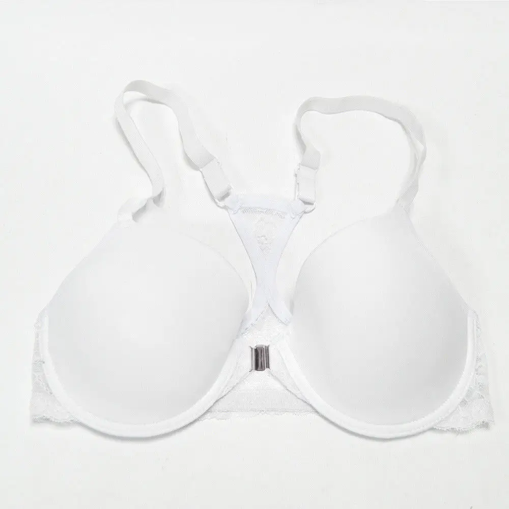 Бюстгальтер женский кружевной, с застежкой спереди, с Y-образной за...