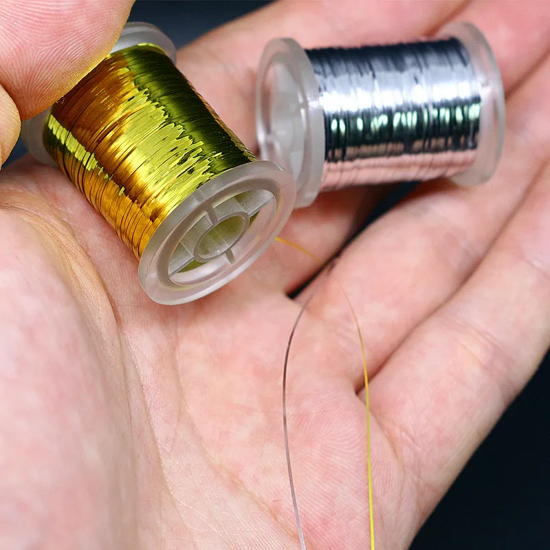 Майларовая Мишура для вязания мушек Royal Sissi, золотистая, серебристая, с 2 катушками, маленького размера, ширина 0,5 мм, материал для вязания мушек