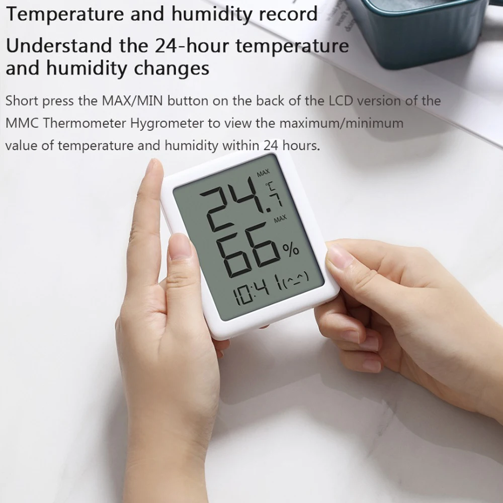 Название продукта: версия ЖК Модель продукта: MHO-C601 Размер продукта: 88 мм * 70 мм * 12 мм 59 г (включая батарею) Вес изделия: АБС-пластик Материал: Диапазон измерения температуры: 0 °C ~ 60 °C температура Разрешение дисплея: 0,1 ℃ Диапазон измерения влажности: 0% RH-99 относительной влажности Разрешение дисплея влажности: 1% RHCR2032 Батарея кнопки (установлено 2) Вопросы, требующие внимания: 1. Вентиляционные отверстия изделия нельзя погружать в воду; 2. Диапазон измерения температуры этого продукта составляет 0 ℃ ~ 60 ℃, что не подходит для использования в суровых условиях ниже 0 ℃ и выше 60 ℃; 3. Диапазон измерения влажности этого продукта составляет 0% RH-99 относительной влажности, пожалуйста, держитесь подальше от суровых условий с повышенной влажностью; 4. Этот продукт используется как полезный для здоровья, а не как измерительный инструмент; 5. Вышеуказанные данные являются тестовыми данными лаборатории Miao, которые могут отличаться в зависимости от фактического использования.