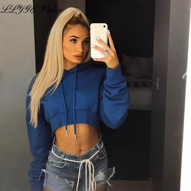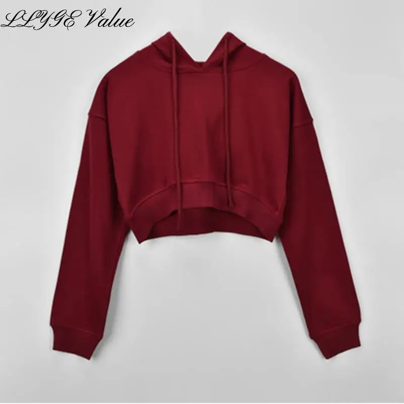 Однотонный серый укороченный топ с капюшоном, Женская толстовка с длинным рукавом, женские толстовки на шнуровке, осень 2021, модная повседневная женская одежда