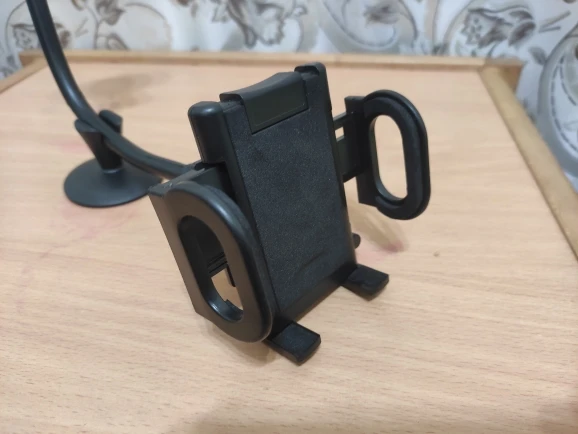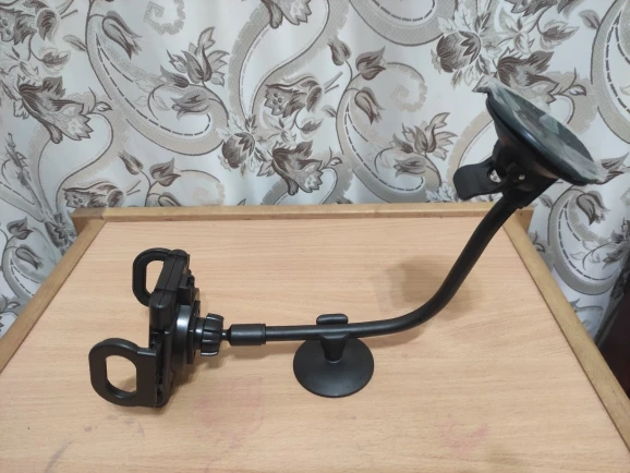 Очень хороший держатель телефона! Крепится хорошо и гибкая часть очень жёсткая и не расправляется при движении автомобиля даже по кочкам. Лучший из держателей, что у меня был! Рекомендую!