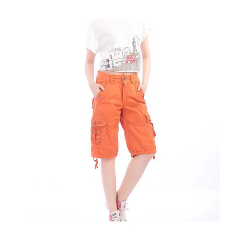 Женские повседневные брюки-карго, однотонные свободные шорты до колена с карманами, высокой талией и пуговицами, уличная одежда