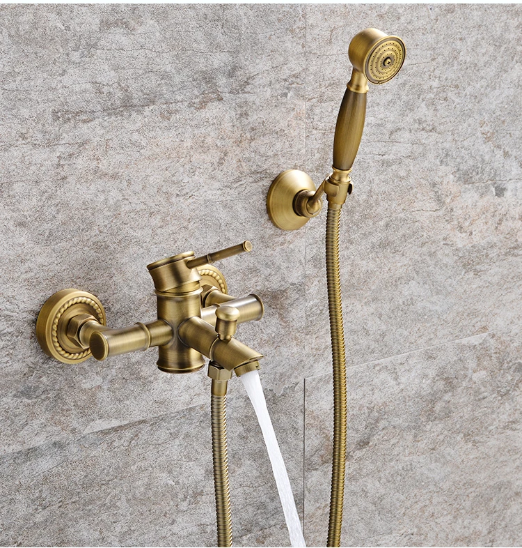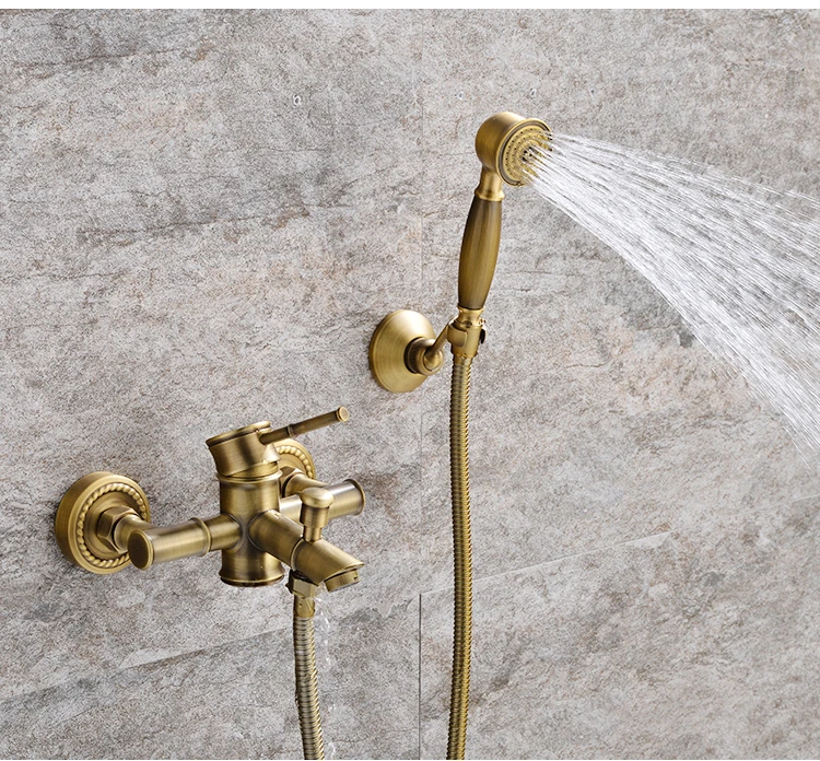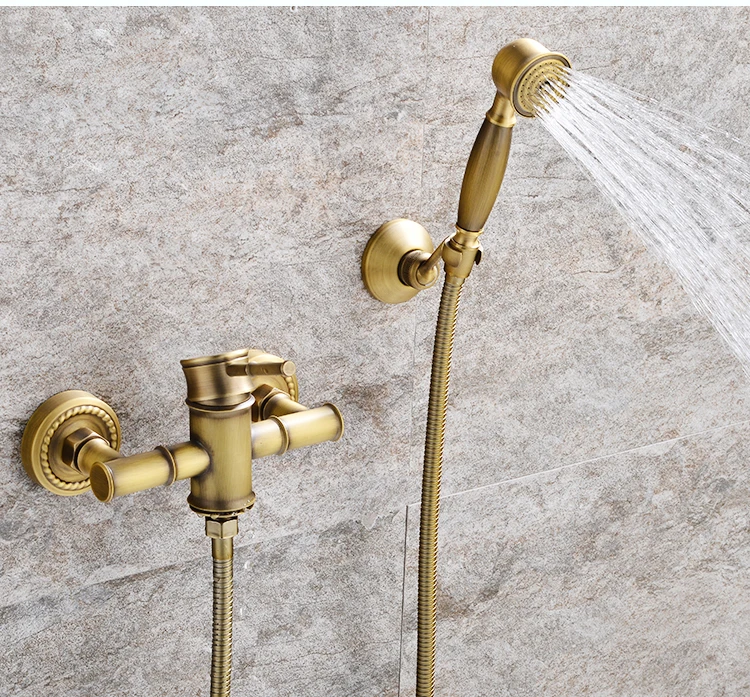 Бамбуковый смеситель для душа EL740, кран для ванны, античная бронза, ручной душ