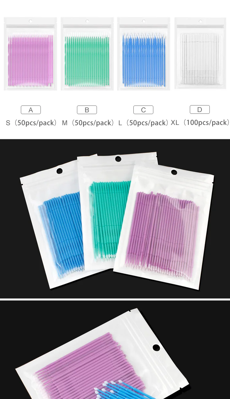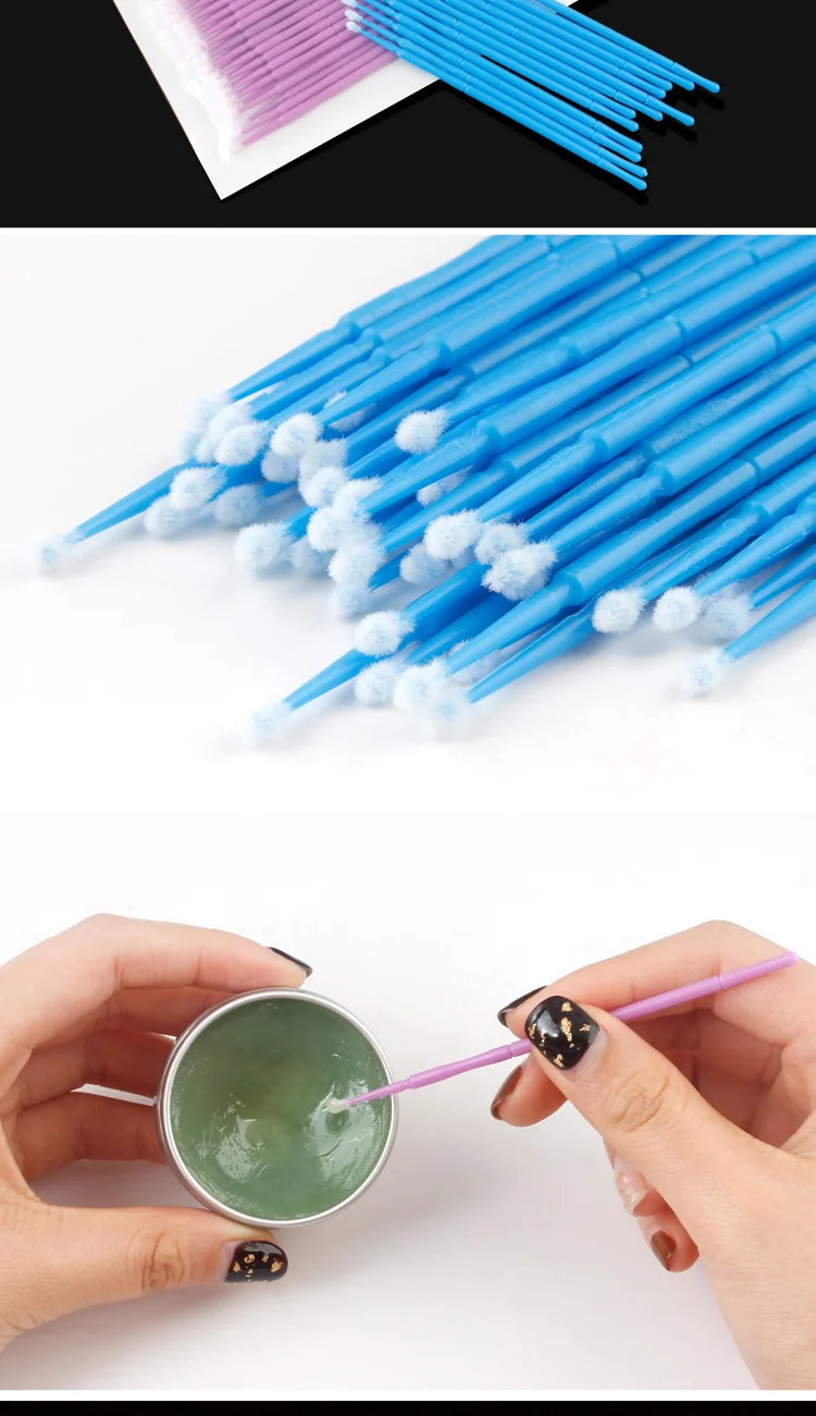 100 шт.50 шт., одноразовые разноцветные ватные палочки для наращивания ресниц
