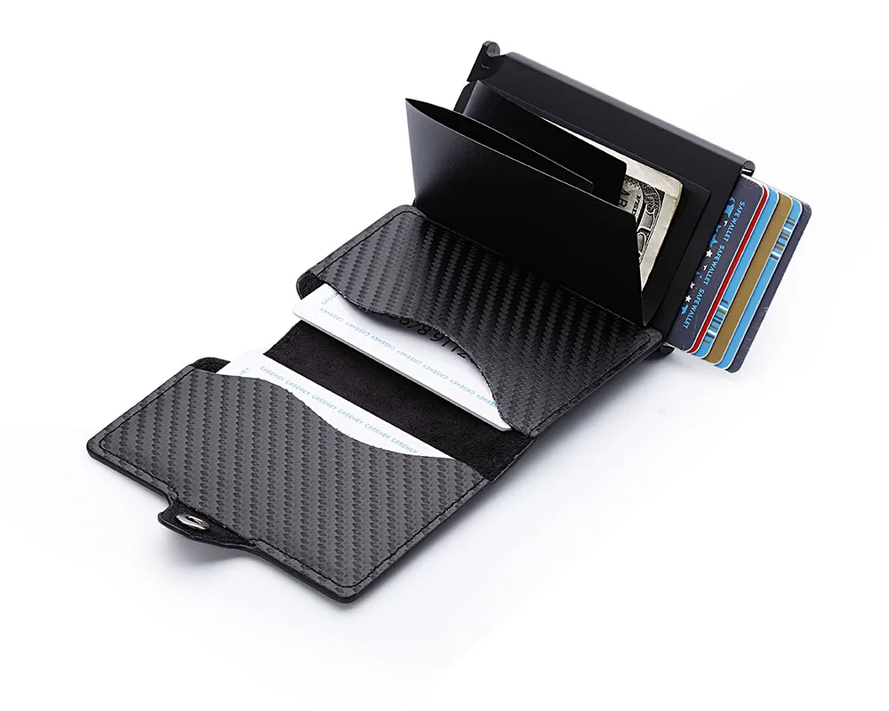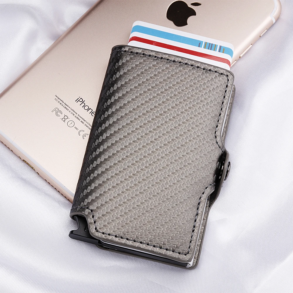 Casekey роскошный карбоновый Мини Pop Up Rfid бумажник для мужчин, тонкий кожаный Бизнес ID кредитная карта, карман, держатель, бумажник
