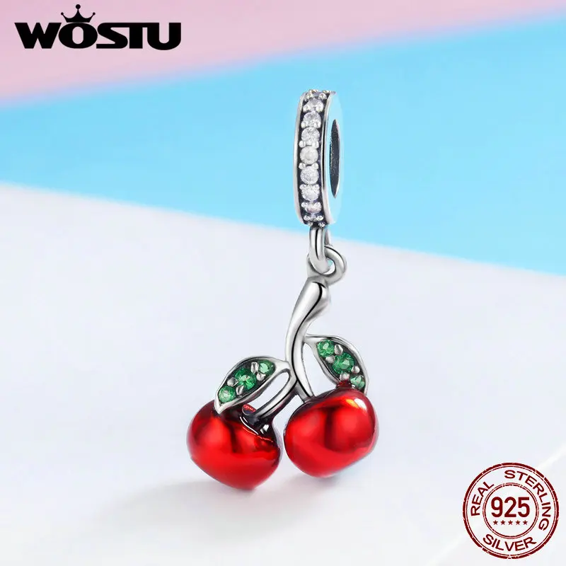 Ожерелье женское из серебра 925 пробы, с красной вишней