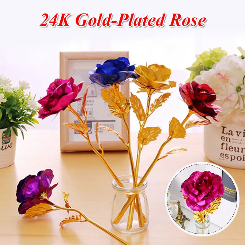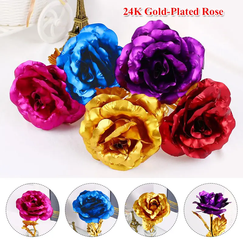 24K золотые розы искусственные синие розы цветы влюбленных подарок для дома свадьбы деко День матери романтические дешевые поддельные цветы❀ Описание товара# Тип A 24K позолоченные розы