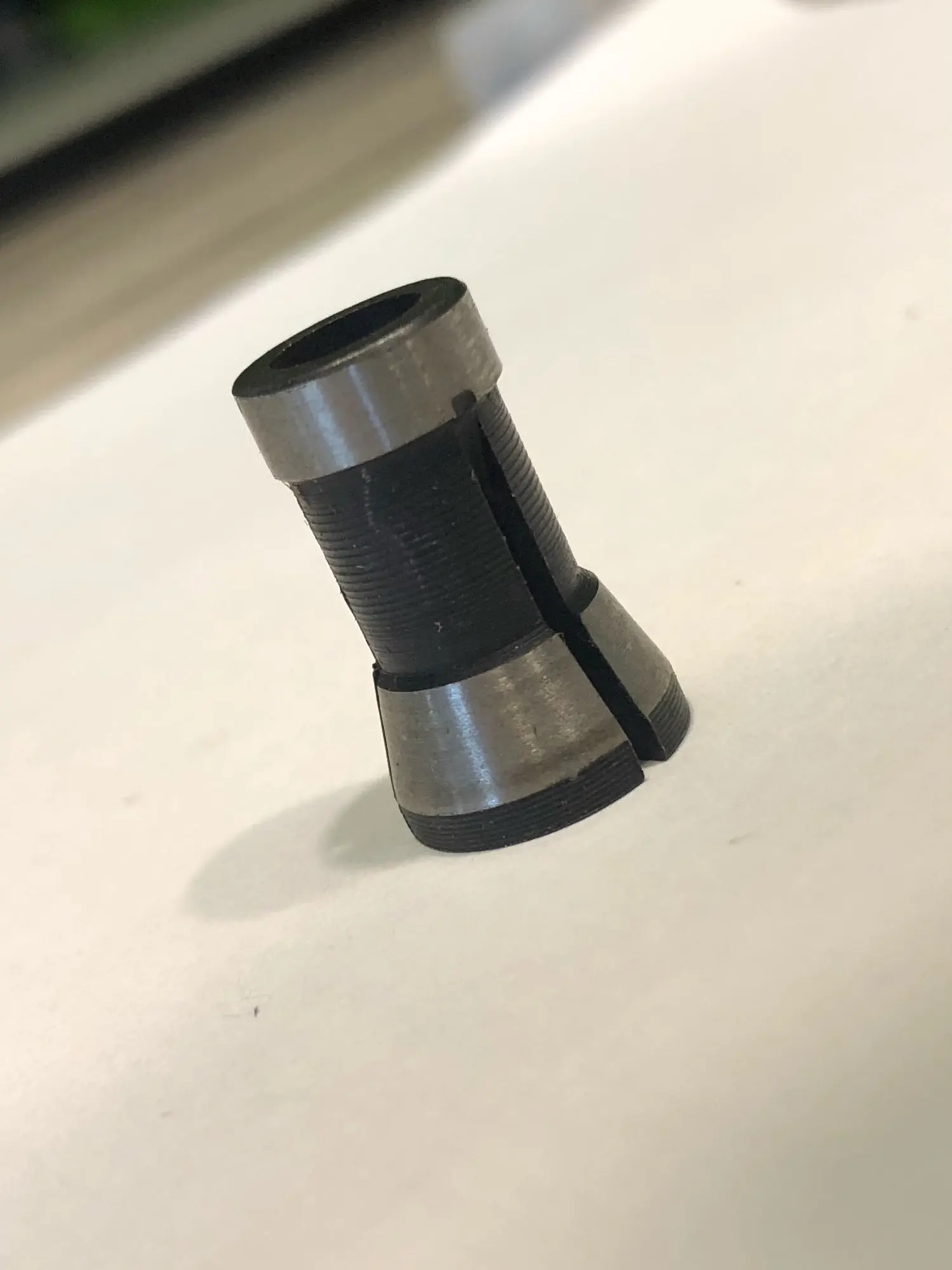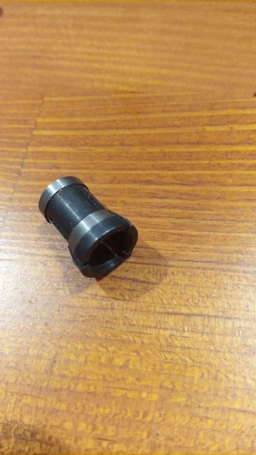 На вид очень качественно изготовлен. Обратите внимание, что к Makita RT0700CX2/RTO700CX3 не подходит, т.к. нижняя часть цанги чуть больше, чем отверстие вала двигателя фрезера. В планах проточить цангу, запаса по толщине нижней части должно хватить. По факту отпишу, всё ли получилось. Пока пользуюсь стандартной короткой цангой на 8 мм. Держит хорошо, но она менее надёжная, чем удлинённая.