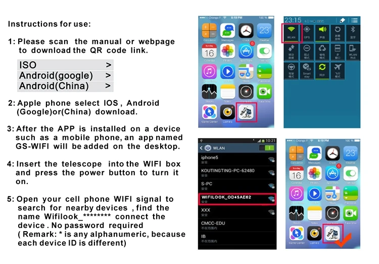 6: откройте приложение GS-WIFI на рабочий стол мобильный телефон, и вы можете увидеть изображения в телескоп.