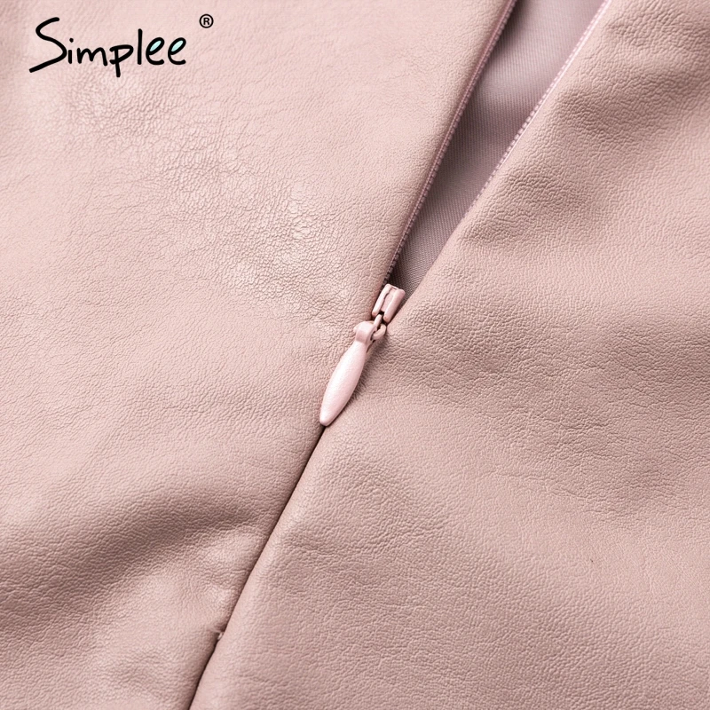 женская черная юбка-карандаш Simplee, сексуальная короткая юбка из искуственной кожи на шнуровке для осенизимы, повседневная юбка с высокой талией и разрезом