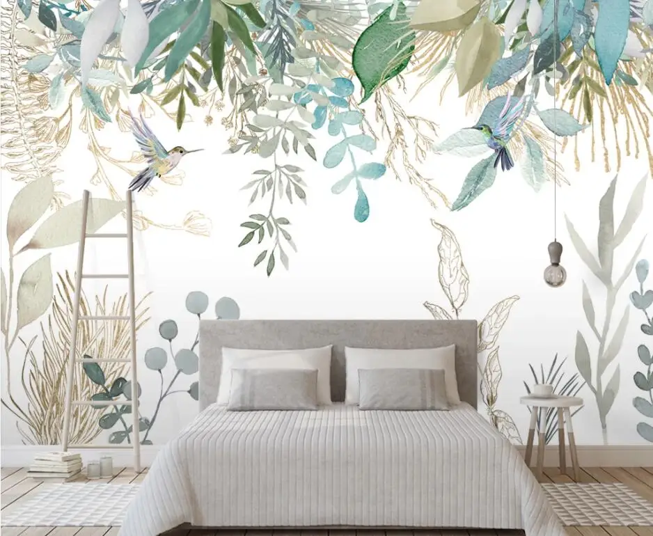 Обои на заказ, современные, ручная роспись, тропические растения, листья, цветы и птицы, фрески для гостиной, спальни, водостойкая настенная живопись
