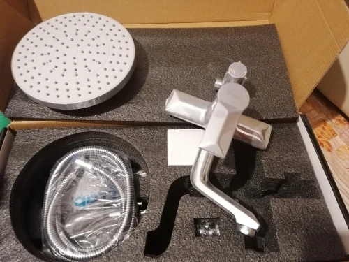 Пришла душевая система довольно быстро, в целости и сохранности. В основном конструкция металлическая, выглядит надежной. Дейка душа, как обычного, так и тропического, пластиковая, но смотрится все очень хорошо. Цена максимально гуманная, в магазинах чего-то подобного найти так и не удалось. Покупкой в целом довольны, спустя время, ещё дополню отзыв
