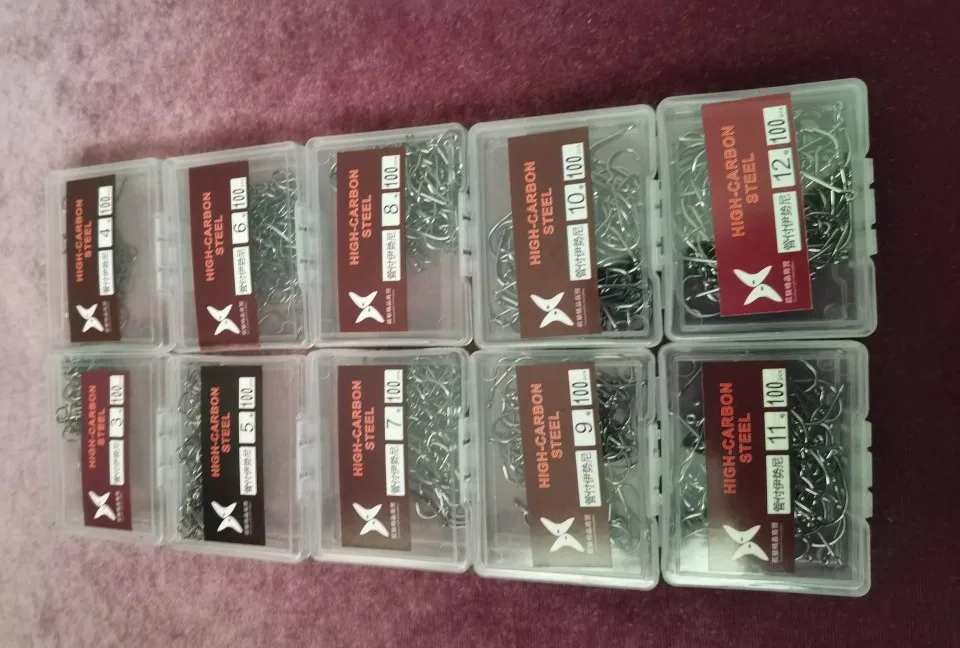Крючки рыболовные из высокоуглеродистой стали, 3 #-12 #, 10 размеров, заточенные, 10 коробок, держатель для крючков