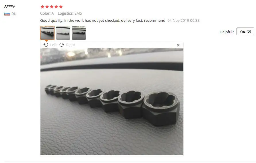Заказывал длинные головки. Квадрат под вороток 3/8. Одна головка лежала боком так коробку и закрыли. Остались вмятины в ложементе. Сама она выпасть не могла, в коробке всё плотно. Упаковка плохая, один пластиковый уголок треснул. Наплевательское отношение к своим клиентам.