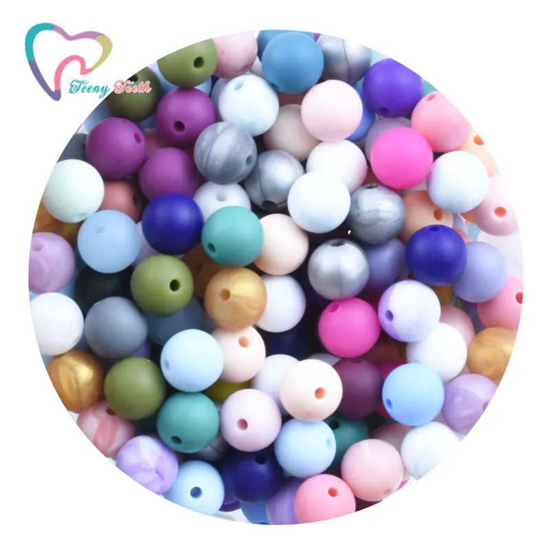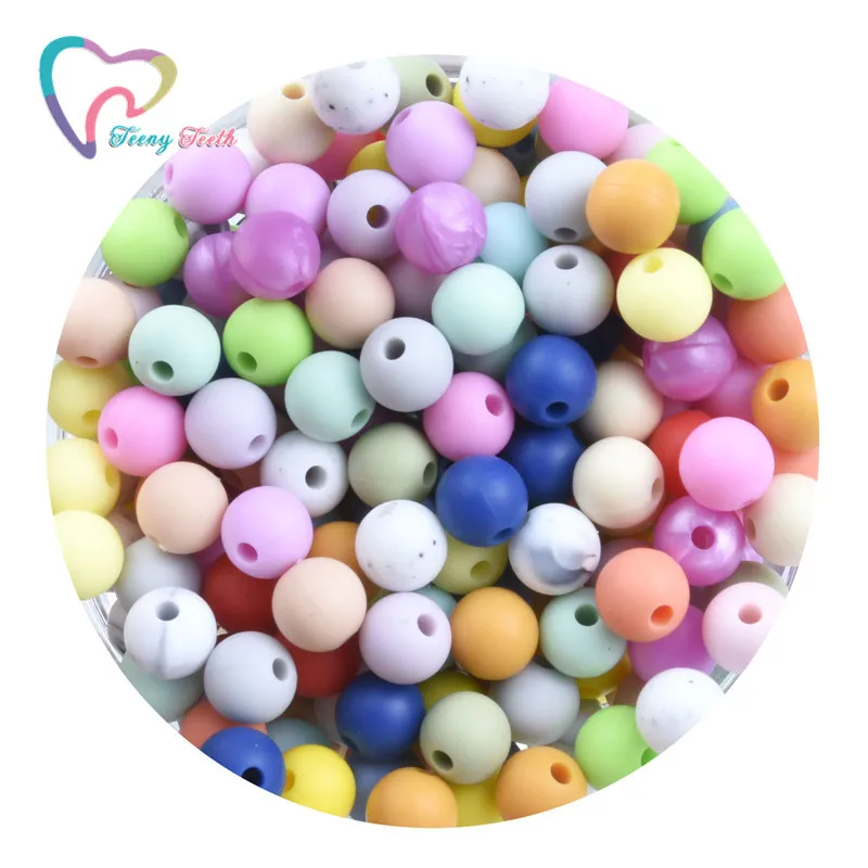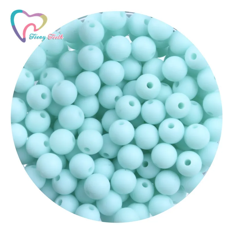 100 шт., круглые силиконовые бусины для прорезывания зубов, 9 мм