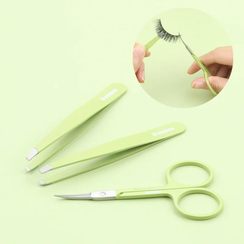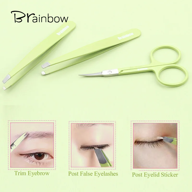 Brainbow 3 шт. профессиональный набор инструментов для макияжа, набор из нержавеющей стали, плоский пинцет для бровей, удаление волос на глаза, изогнутые ножницы для макияжа