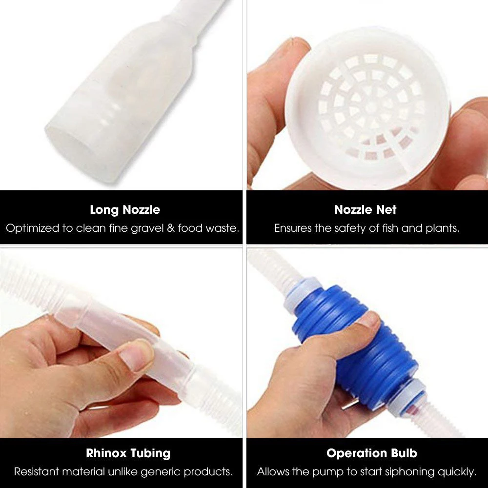 Хранение без хлопот-гибкий сифонный насос помогает предотвратить попадание мелкого гравия и мусора в шланг. Мало того, что после того, как он сделан, вам не составит труда думать, где вы его храните, так как его можно разместить практически в любом месте! Благодаря своему стратегическому портативному дизайну вы можете хранить его в любом желаемом месте, где вы сможете легко получить доступ к нему в следующий раз.