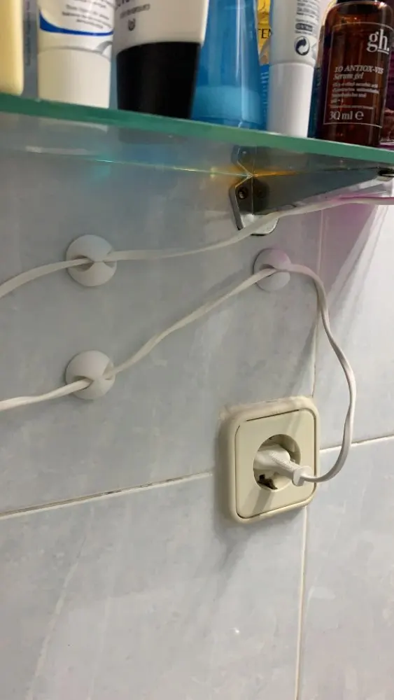 Интересно, чтобы провода были рассортированы. Но приклеиваемая им система не может выдержать полдня. Вы должны заменить наклейку чем-то другим. Я купил его снова, но я буду использовать двустороннюю ленту.