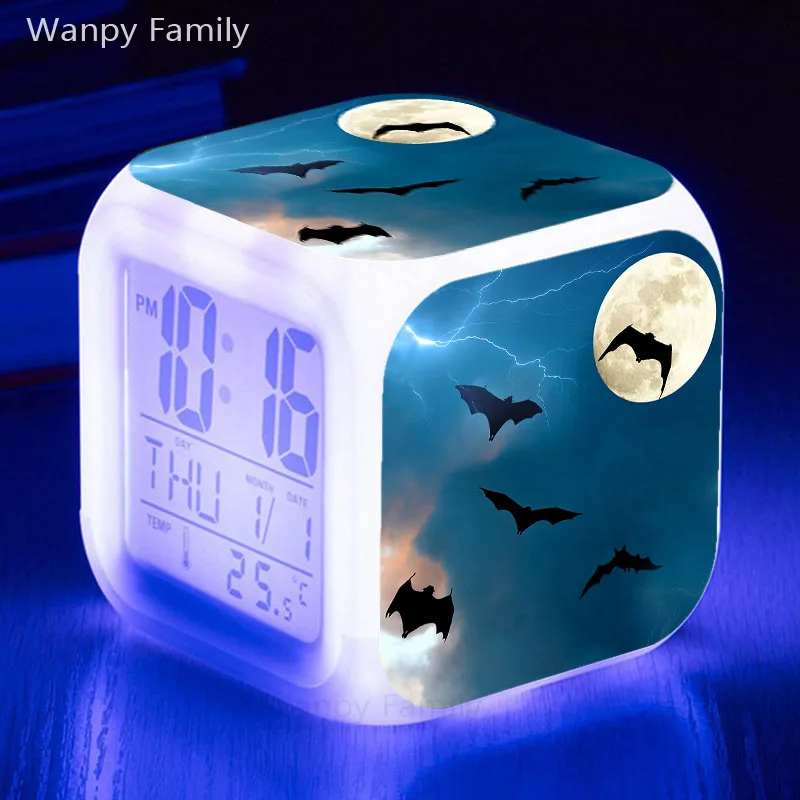 Светодиодный Будильник Dark Angel Bat, большой экран, цифровые часы, подарок для детей на день рождения, 7 цветов, светящийся Многофункциональный Настольный будильник