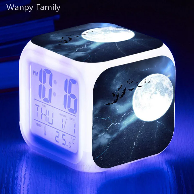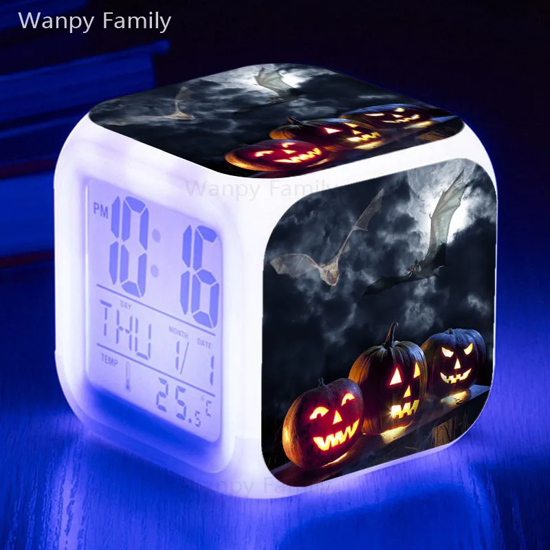 Хэллоуин светодиодный Будильник 7 цветов Изменение прикроватные нас...