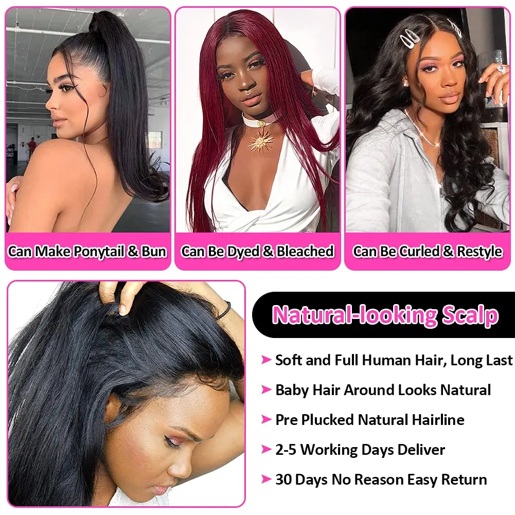 Парик из человеческих волос с прозрачной сеткой спереди, 28, 30 дюймов