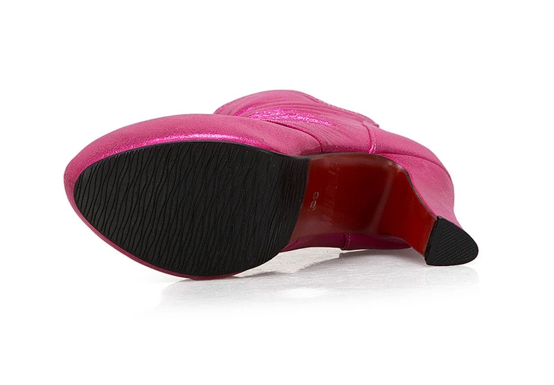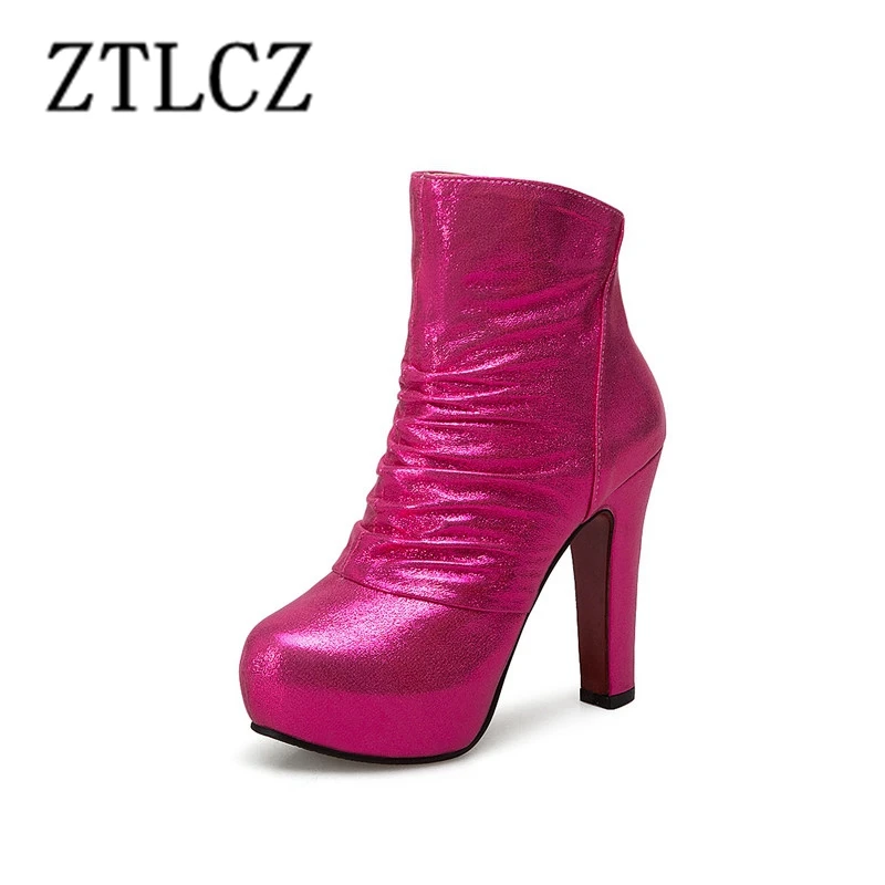 Ботильоны женские, на высоком каблуке, с блестками, розово-красные, для осени и зимы, 43
