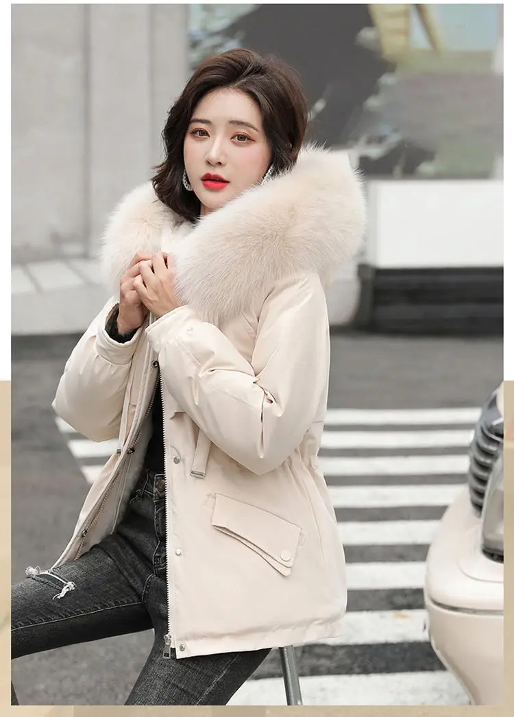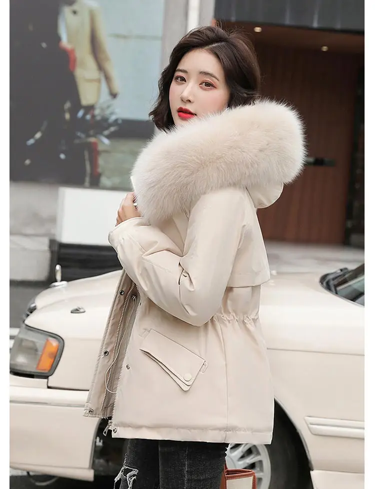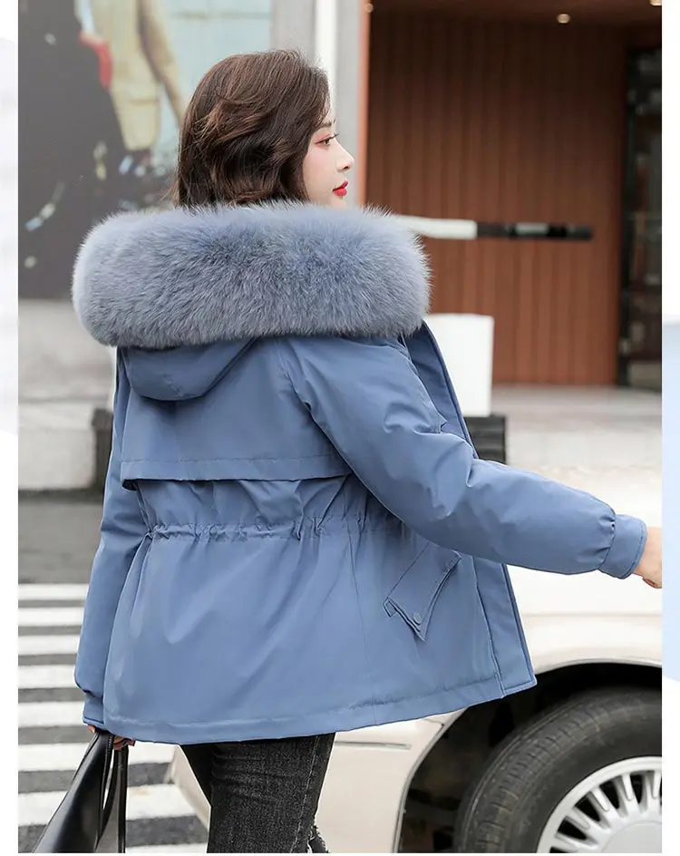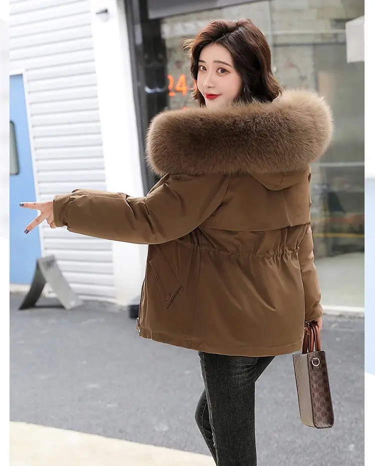 Меховые куртки, женские парки 2022, модные плотные повседневные пальто с капюшоном, Женские однотонные теплые плюшевые фонарики на молнии