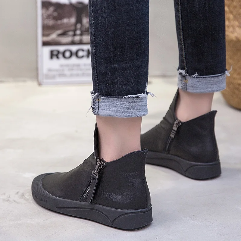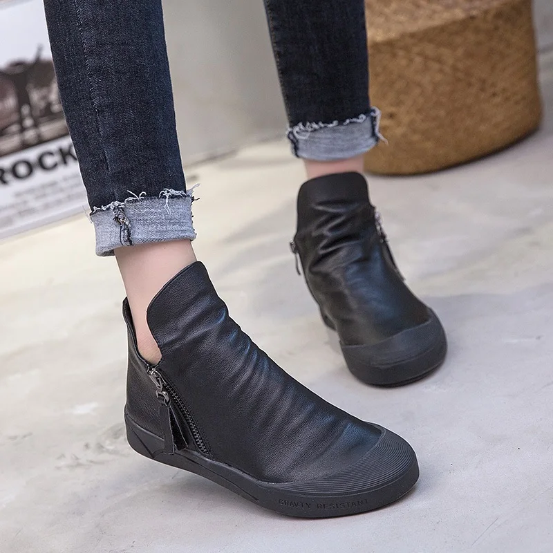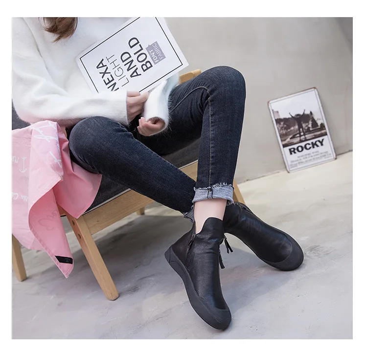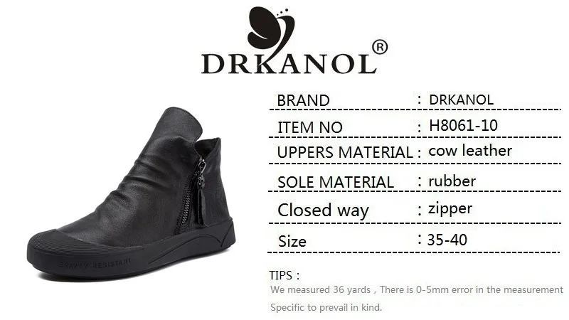 Ботинки женские DRKANOL, из натуральной кожи, на мягкой подошве, с круглым носком, на молнии, теплые, 2021