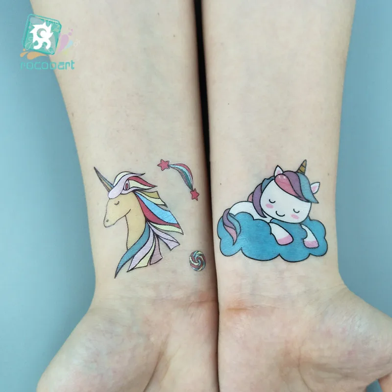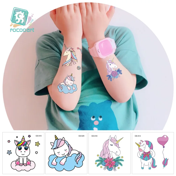 Rocooart Горячая продажа мини Единорог Лошадь тату дизайн для мальчиков и девочек Детские Водонепроницаемые Временные татуировки стикер для детей