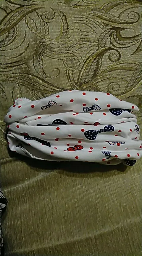 Хороший хлопковый снуд, края обработаны. Тянется правда не очень хорошо, но надеюсь ребёнку подойдёт.