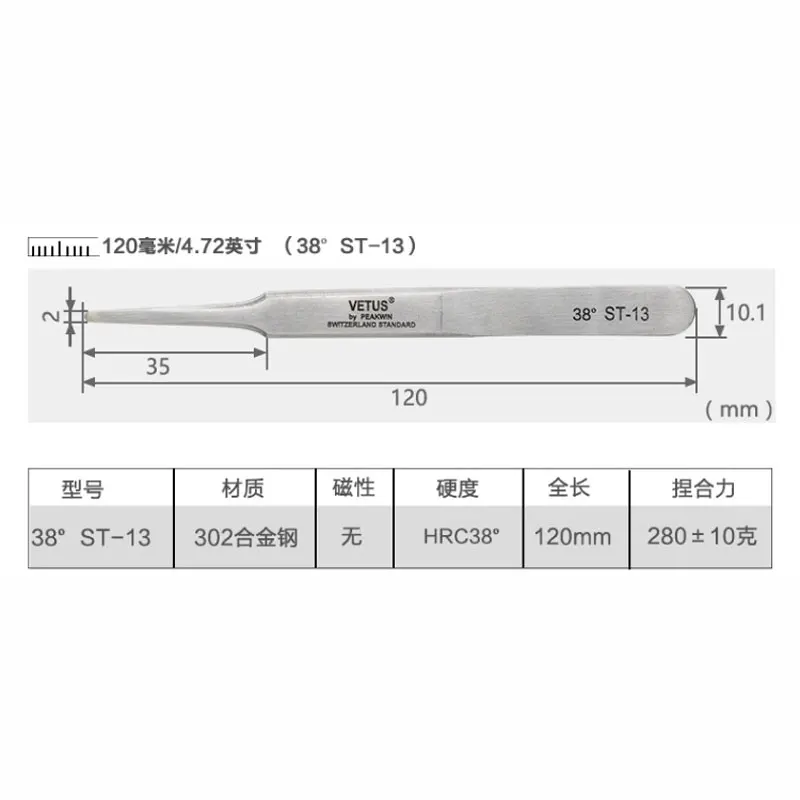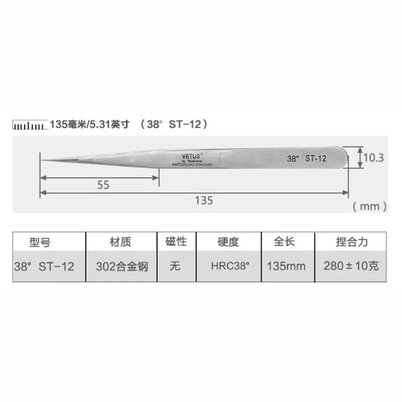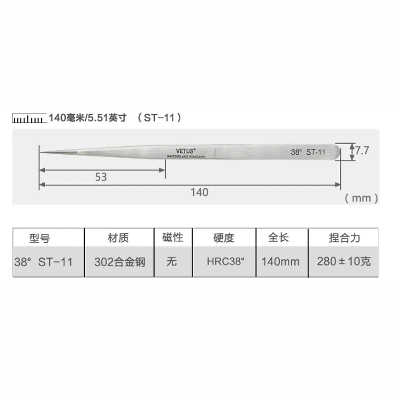 100% Пинцет VETUS HRC38 из нержавеющей стали для ресниц, высокоточный Антистатический пинцет для наращивания ресниц