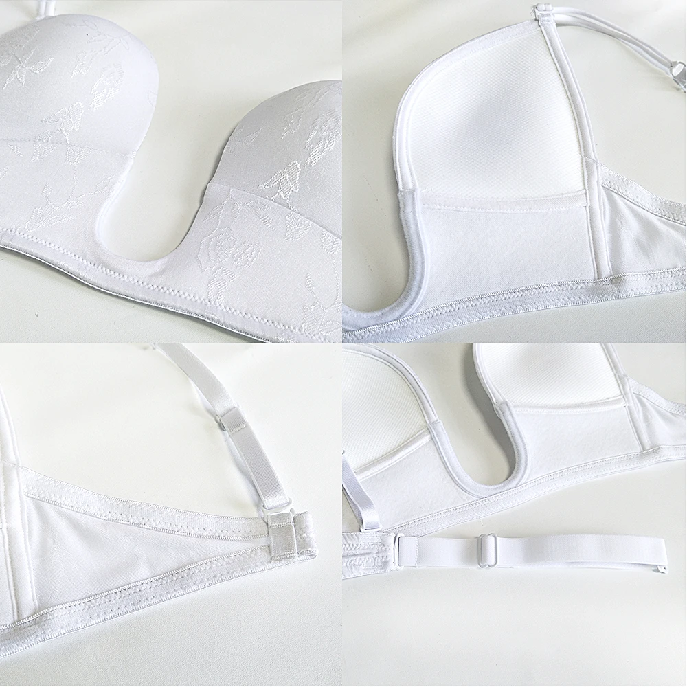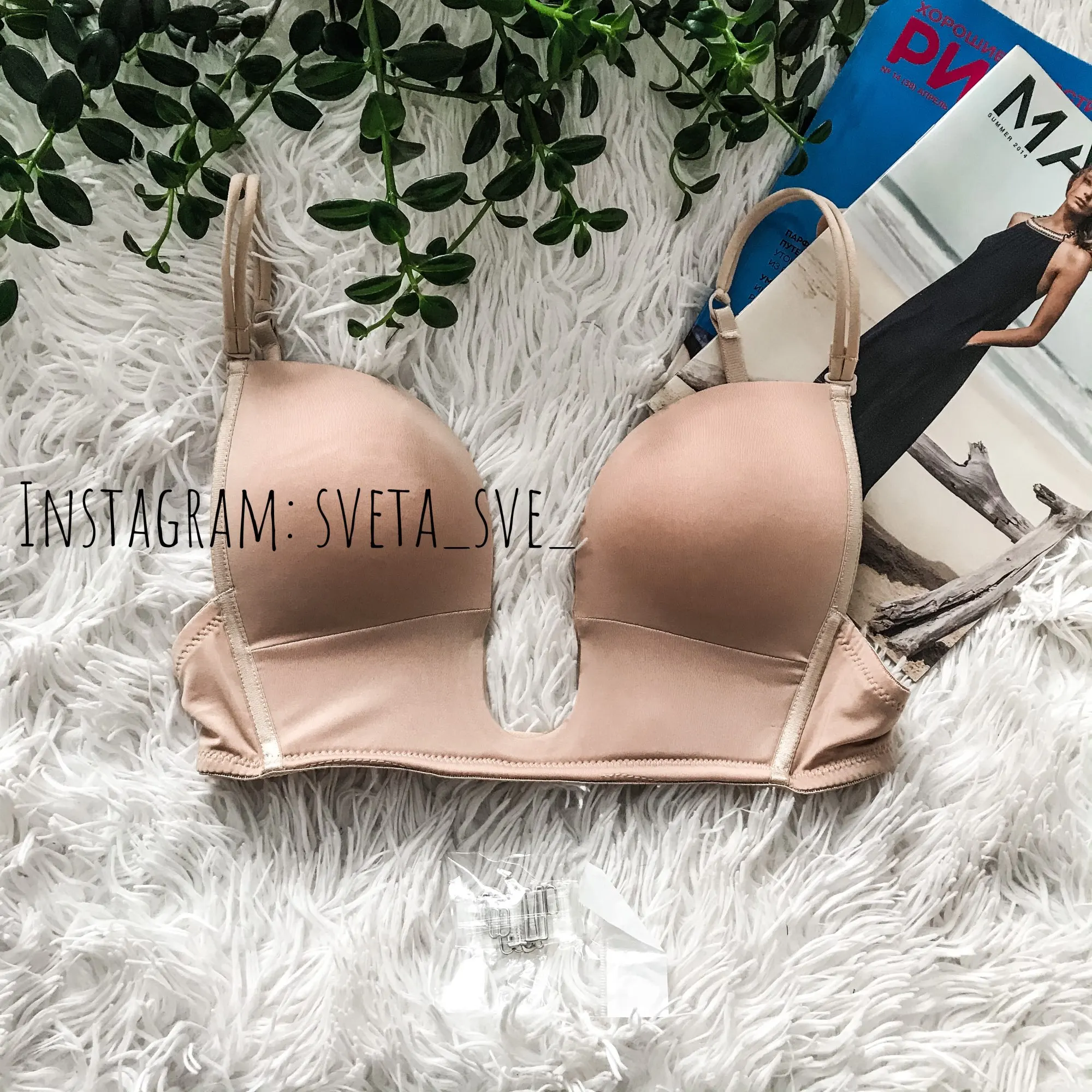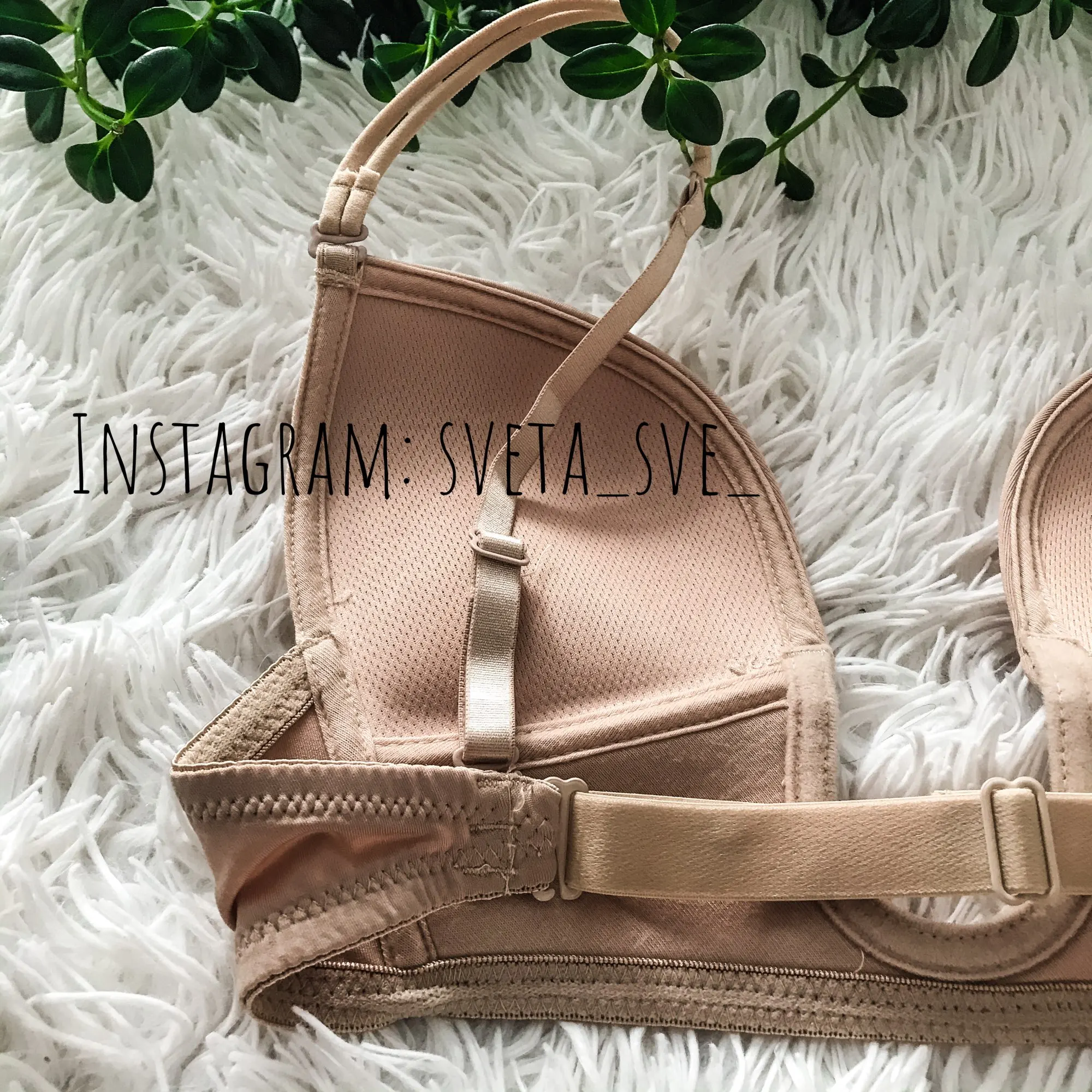 Заказала бюстгальтер для блузки с глубоким вырезом, вырез подошёл, но сами бюстики вылезают немного, придётся булавочками закреплять или двусторонним скотчем приклеивать к внутренней стороне блузки. Сам бюстгальтер нормальный, есть немного пушапа, сзади не обычные застёжки, а крепления как на лямках, и регулируется объём так же, ползунком. Есть прозрачные лямки в комплекте. На объём груди 88см заказала самый маленький 75А, вроде подошло, но так как грудь небольшая немного топорщится сверху. Носить конечно буду, но только с вещами где глубокий вырез.