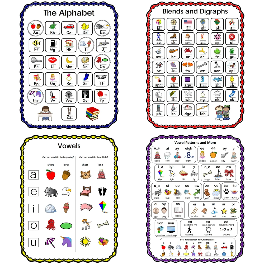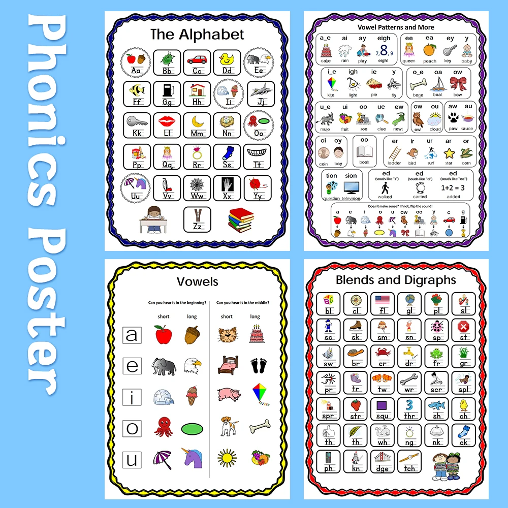 4 шт., Детские плакаты на английском языке