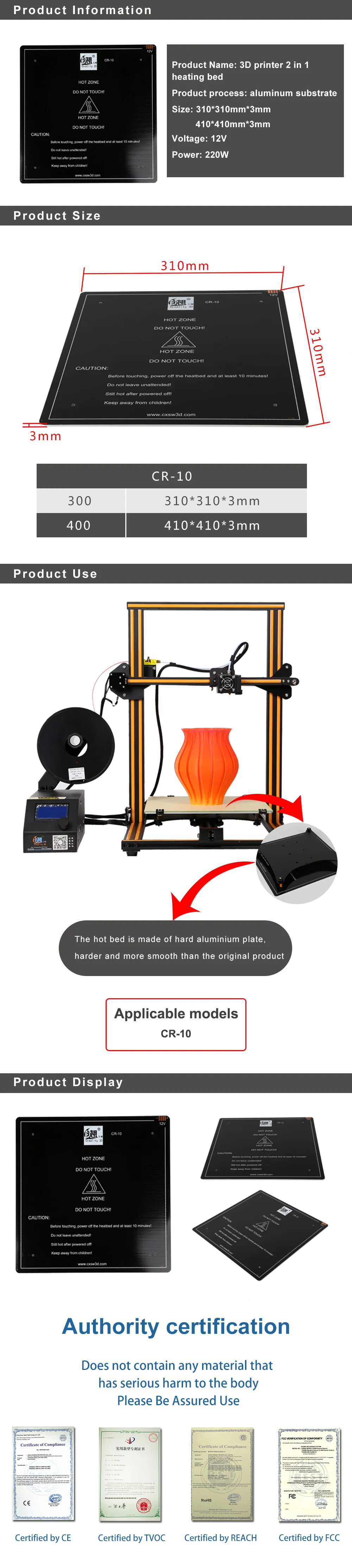 Улучшенная Тепловая кровать MK3, 1224 В, CR10, 310*310410*410510*510*3 мм, для 3d принтера, Hotbed, алюминиевый, для ende-3, V2, CR-10, S4, S5, 3d