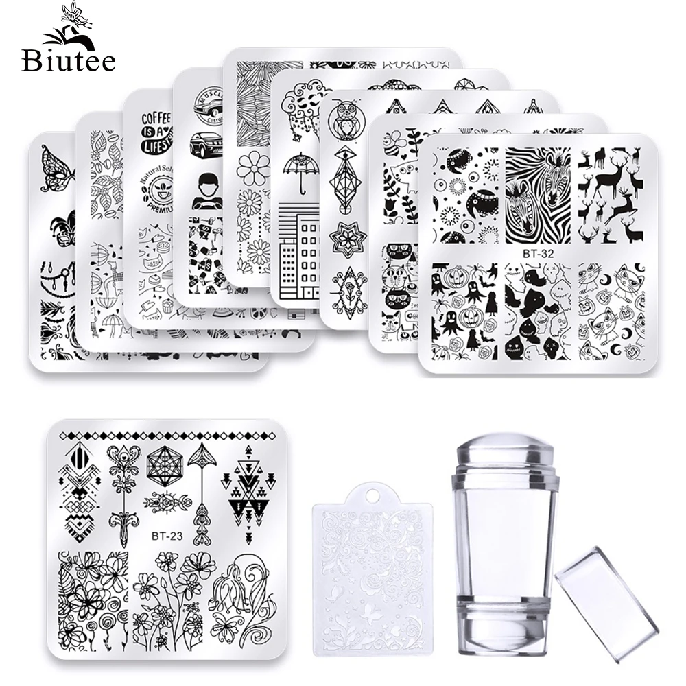 Biutee 10 шт. трафареты для ногтей пластины для стемпинга 6*6 см с...